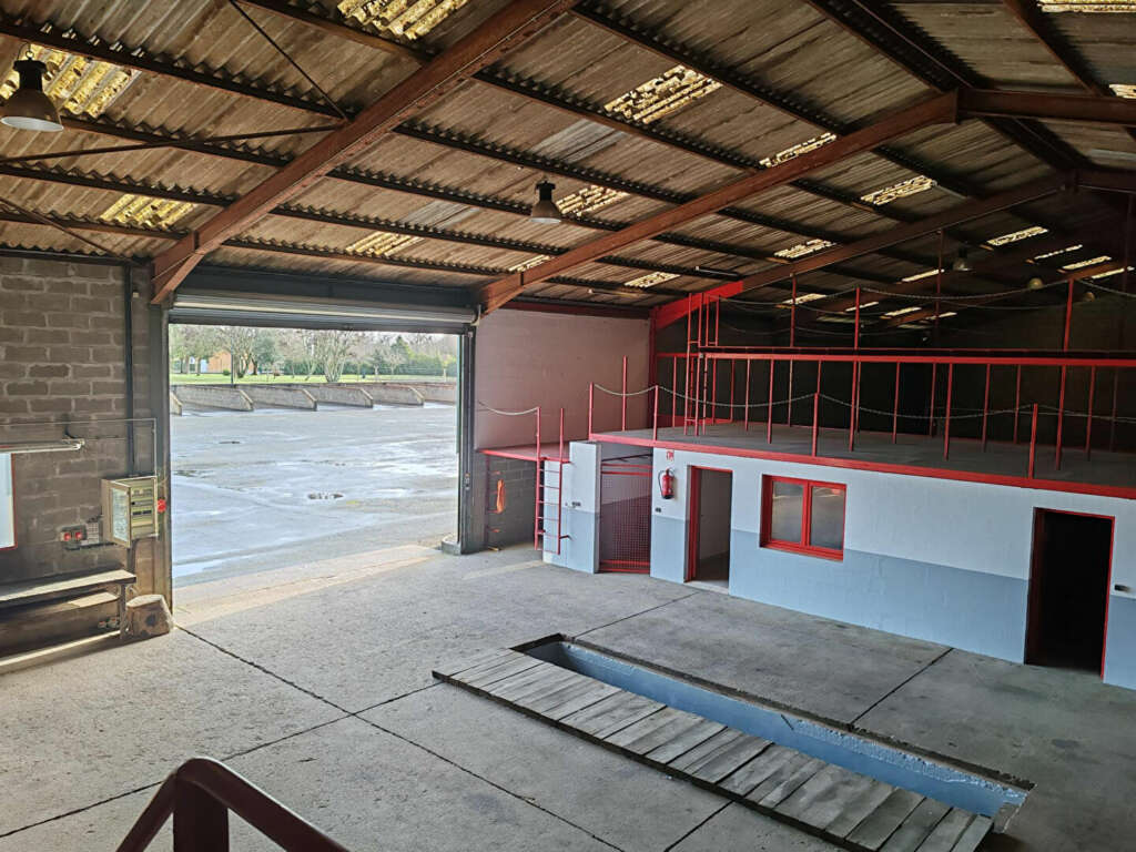 1 ATELIER avec fosse , surfaces de stockage avec mezzanines, bureau, réserves et locaux sociaux .