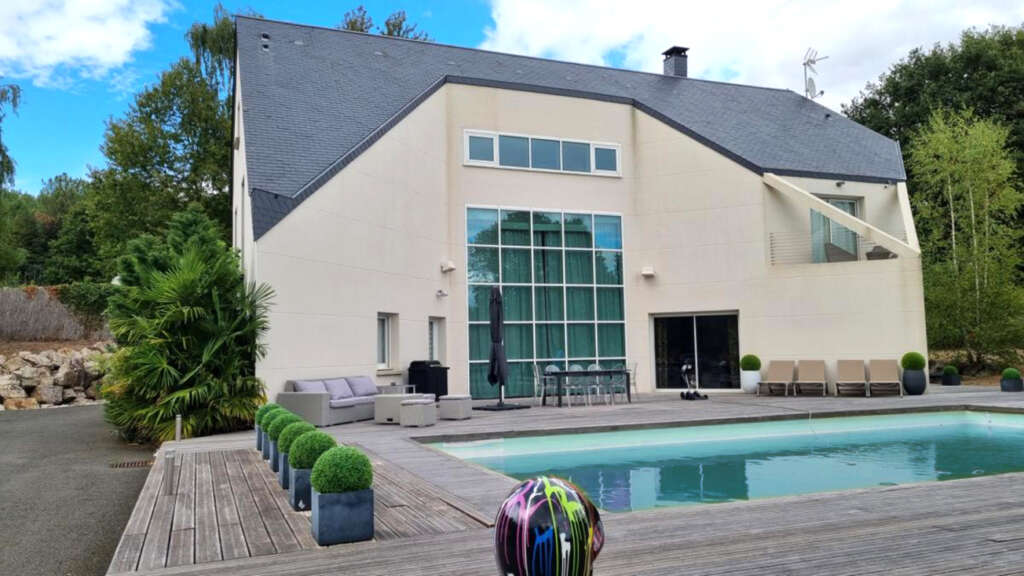10 MNS NORD LE MANS EN EXCLUSIVITE Belle MAISON D’ARCHITECTE d’une superficie habitable de 285 m² comprenant 8 pièces principales dont des réceptions d’une superficie de 85 m² donnant accès à une grande terrasse ainsi qu’une piscine chauffée, toutes deux exposées plein sud. Cette maison, aux volumes étonnants, offre, également, 1 cuisine aménagée et équipée, 1 arrière-cuisine, 5 chambres, 2 grandes salles de bain, 1 bureau, 1 salle de sport ainsi qu’une salle de cinéma .