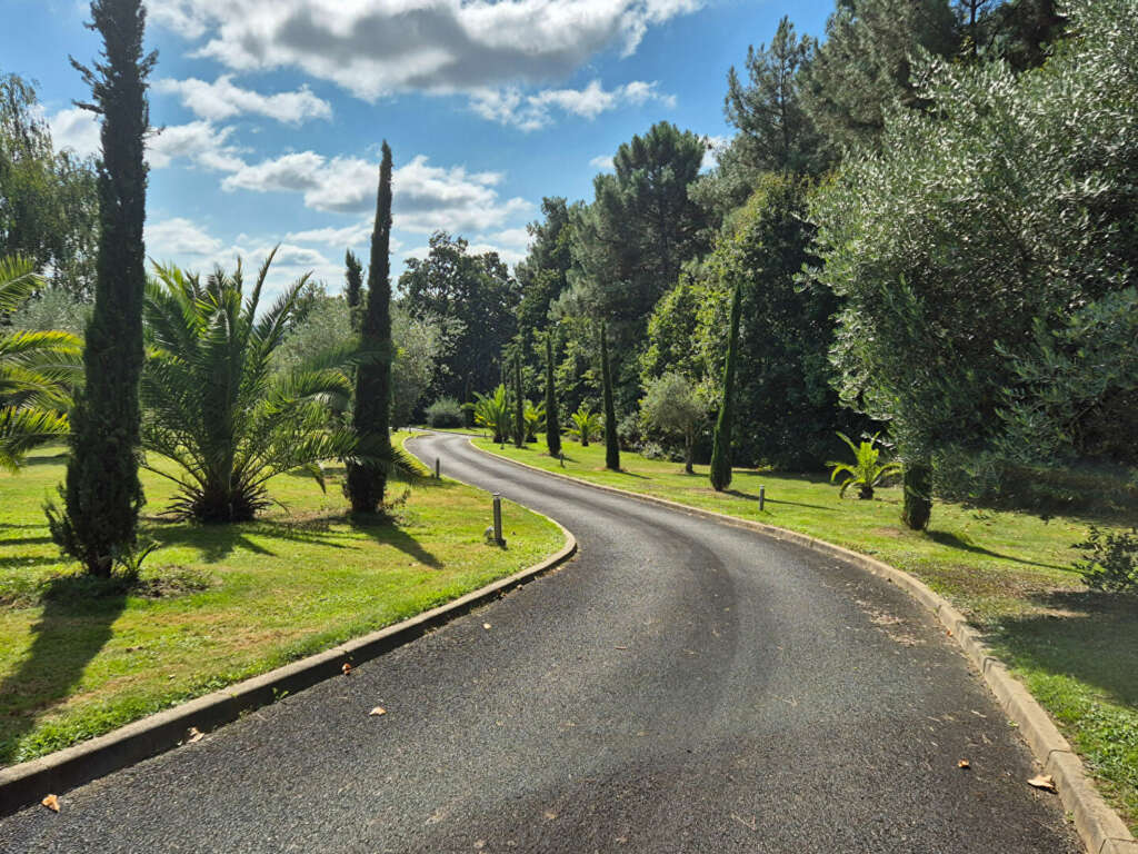 Un terrain clos, paysagé et arboré, d’une superficie de14 000 m², ainsi que 3 garages complètent ce bien.
