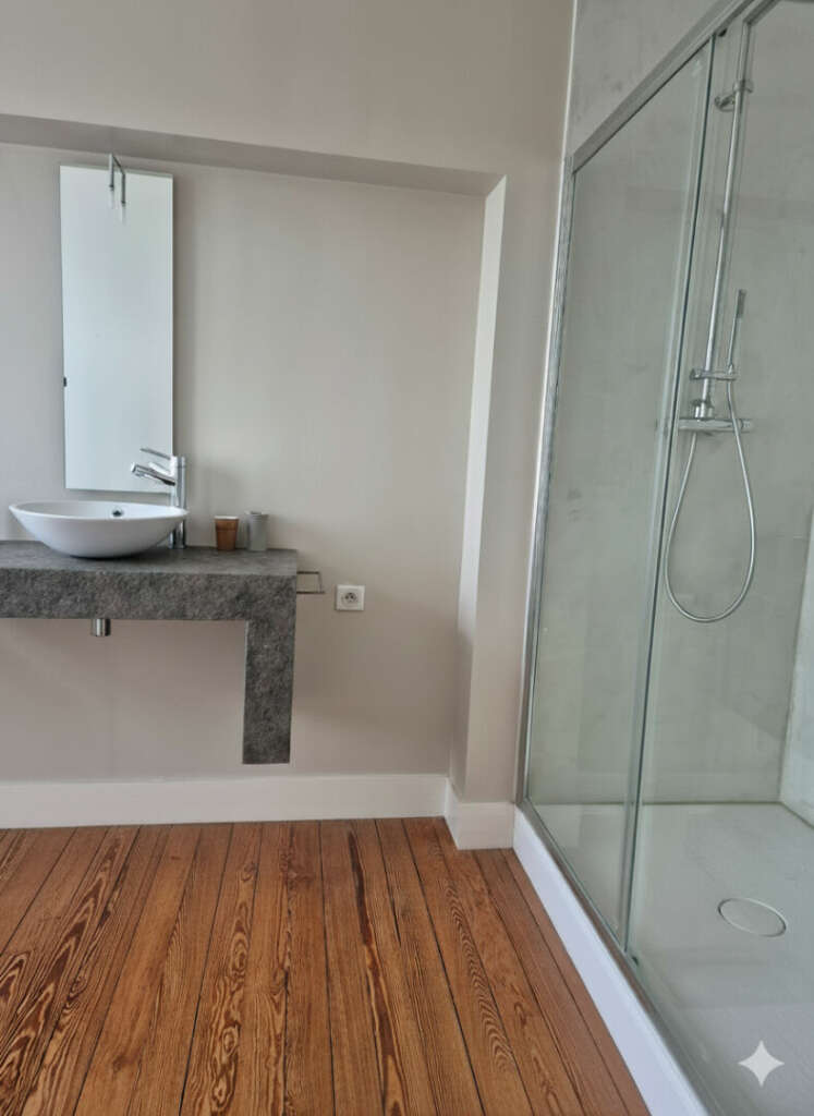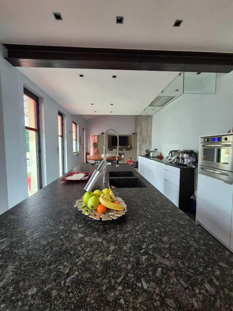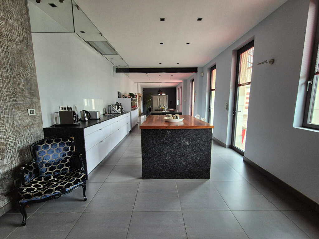 Elle offre, au rez-de-chaussée, de belles réceptions d’une superficie de 50 m2 ainsi qu’une cuisine dinatoire/salle à manger de 70 m² , un grand bureau (pouvant faire office de chambre ) ainsi qu’une grande salle d’eau (norme PMR).