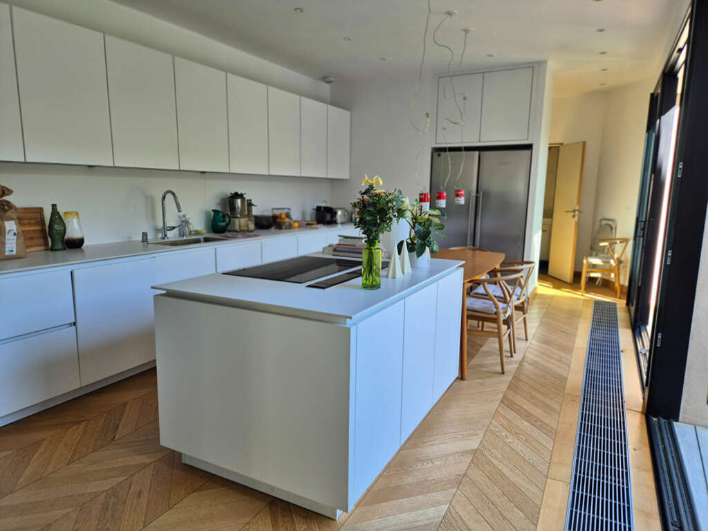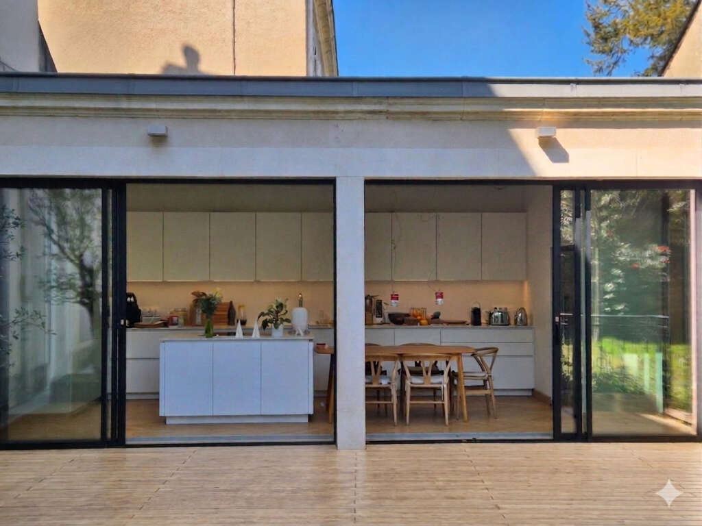 Deux salons ainsi qu’une grande cuisine dinatoire donnent directement sur une belle terrasse, ainsi que sur le parc.